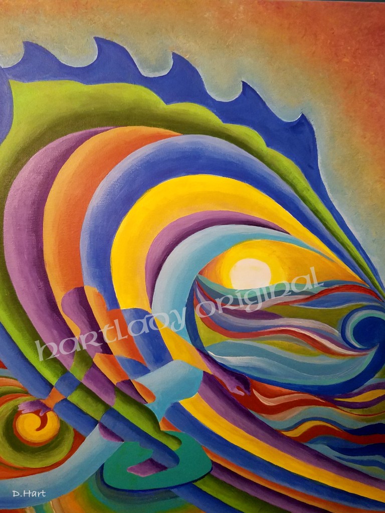 An abstract design per the request of my brother. Gifted to him to pair with one I did previously for him, the Palm Tree. When I came up with the idea of a surfer, he told me not to make it obvious.