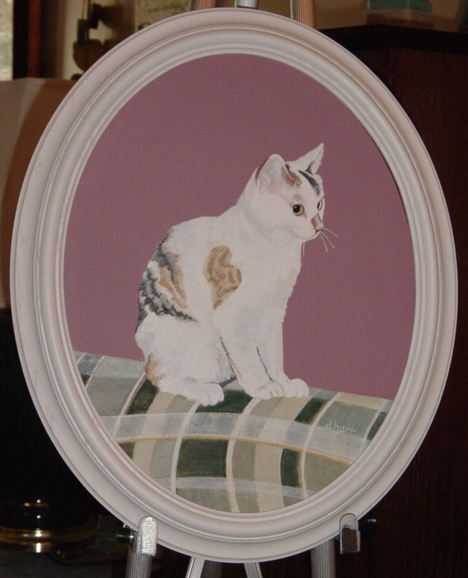 One of my first pet portraits was of Cali, this pretty calico. From a couple photos. She had a heart shaped marking on her side. Gifted to my parents.